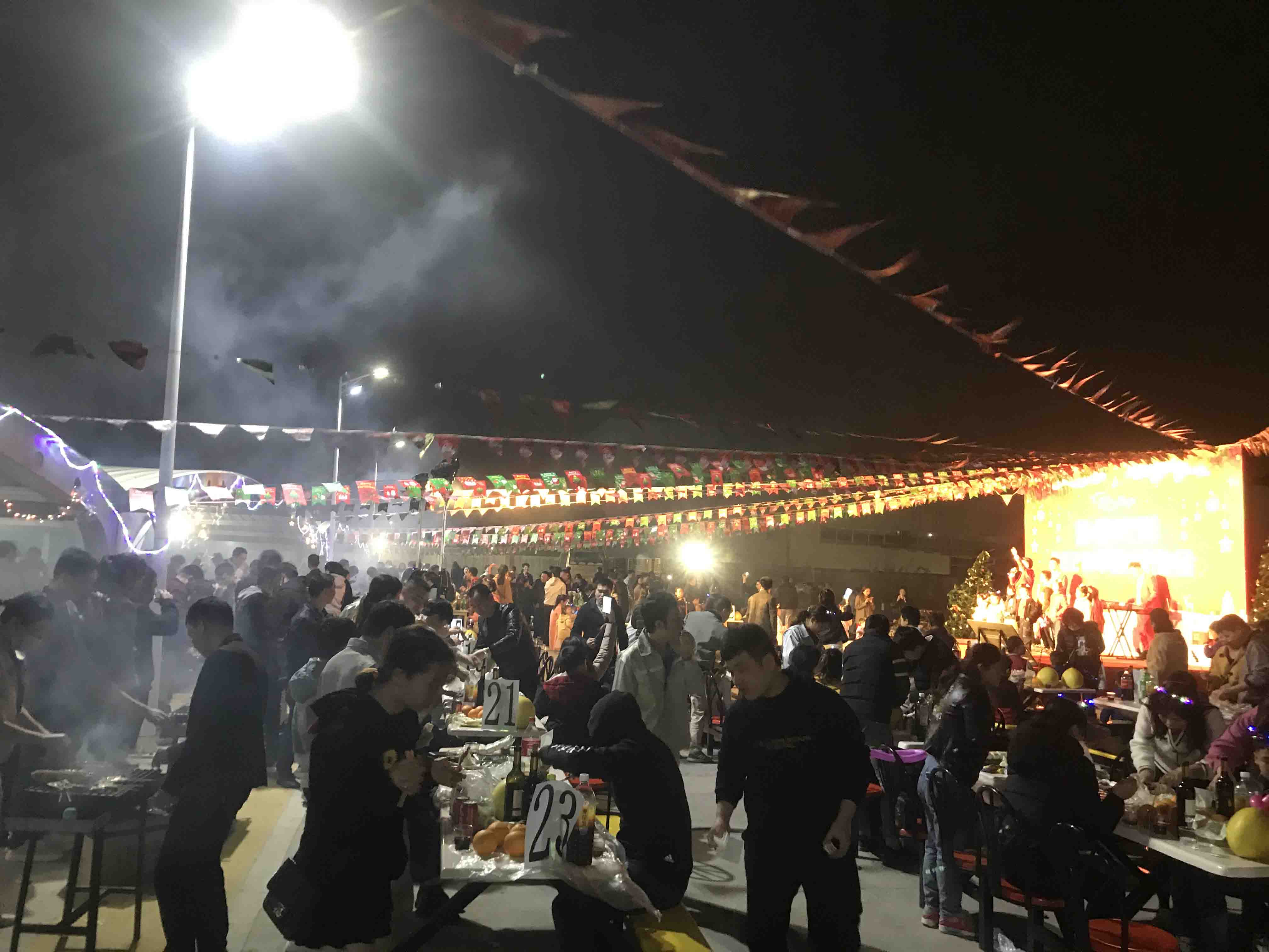 2020年12月19日,本年度的圣誕燒烤活動(dòng)也圓滿結(jié)束了,本次活動(dòng)含員工家屬在內(nèi)總參加人數(shù)為460人。濃濃圣誕氣氛的舞臺背景及迎風(fēng)搖曳的各式彩帶,臺上載歌載舞,臺下燒烤煙火繚繞,孩子們排起了長長的隊(duì)伍等著小丑們幫忙折出各式造型的氣球,現(xiàn)場一片熱鬧的景象!讓我們一起來感受現(xiàn)場的氣氛吧!
